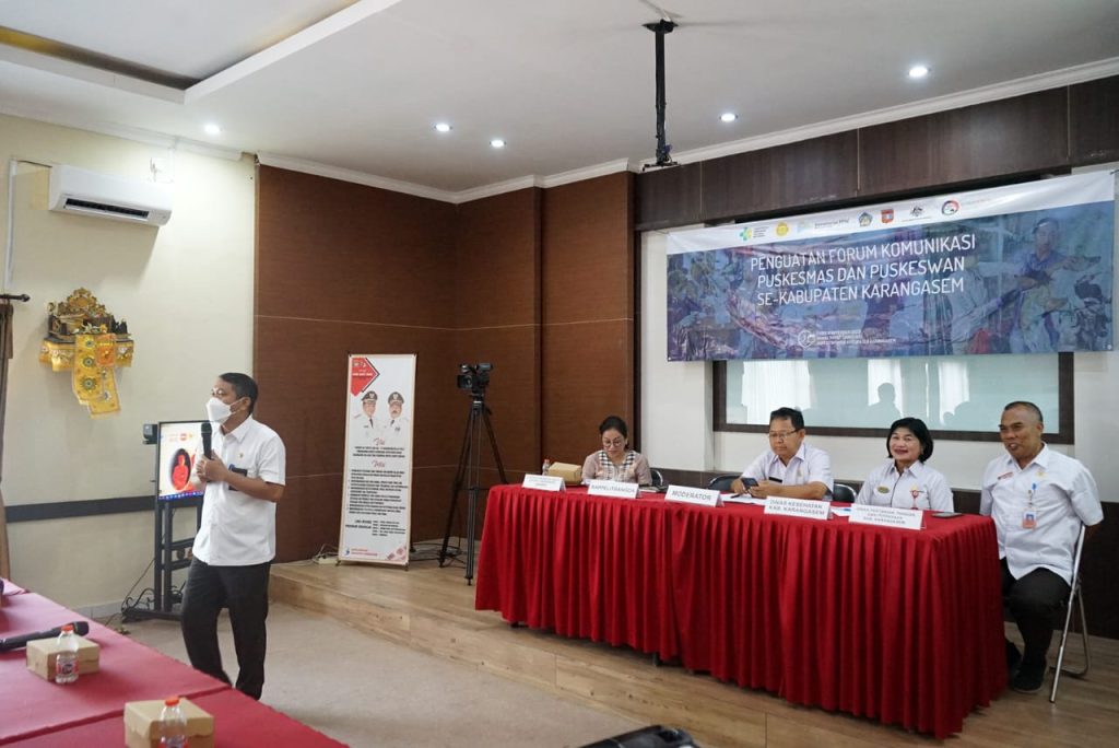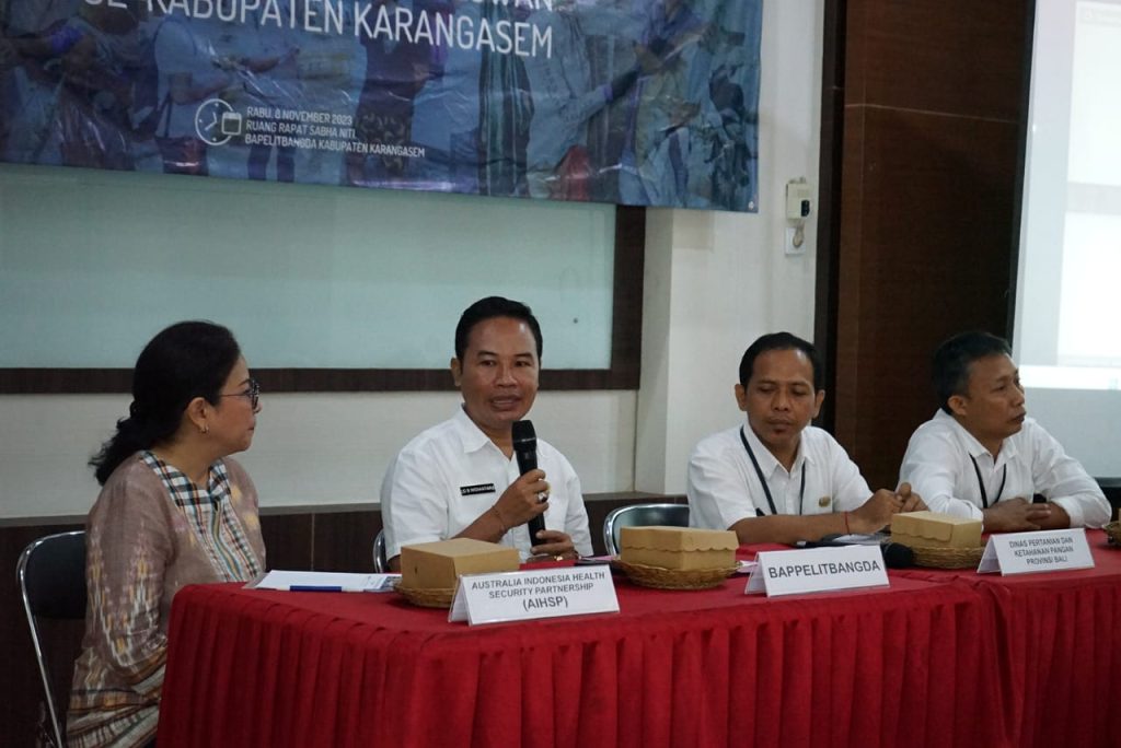 Dalam rangka mensosialisasikan pentingnya sharing lintas sektoral, pertukaran informasi dan mekanisme koordinasi, khususnya dalam pencegahan, deteksi dan respon terhadap penyakit melalui forum komunikasi di tingkat kabupaten yang didukung oleh Australia Indonesia Health Security Partnership (AIHSP), Bappelitbangda Kab. Karangasem melaksanakan kegiatan โPenguatan Forum Komunikasi antara Puskesmas dan Puskeswan di Kabupaten Karangasemโ, Rabu (08/11/2023).