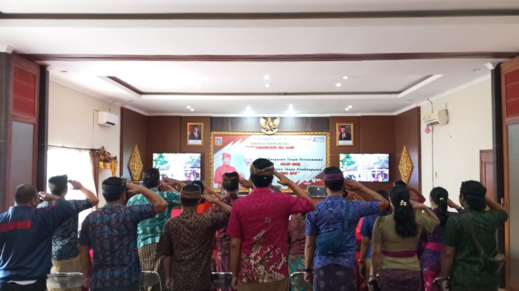 Senin (20/05/24), Bapeda Kab. Karangasem mengikuti Upacara Bendera dalam rangka Peringatan Hari Kebangkitan Nasional Tahun 2024 di Kabupaten Karangasem bertempat di Lapangan Tanah Aron Amlapura yang diikuti pegawai ASN. Sementara Staf Non ASN yang dipimpin Sekretaris Bapeda I Gusti Bagus Widiantara, ST.,M.Si mengikuti upacara bendera di Aula Sabha Niti Bapeda melalui live streaming.