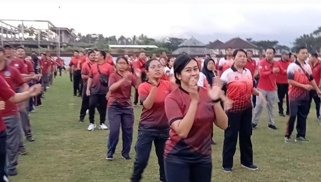 Jumat (05/07/24), Kepala Bapeda Kab. Karangasem I Nyoman Sutirtayasa, ST.,MT beserta jajaran dan staf mengikuti kegiatan krida dengan melaksanakan senam bersama bertempat di Stadion I Gusti Ketut Jelantik, Jalan Veteran Amlapura.