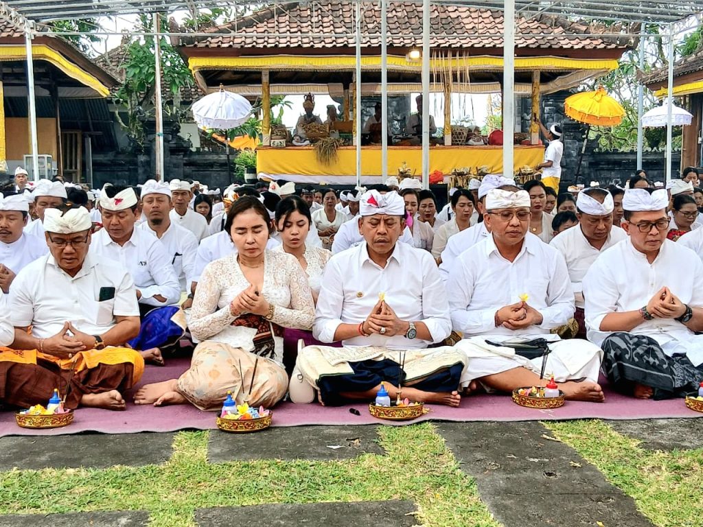 Minggu, 7 September 2025, telah dilaksanakan Persembahyangan Bersama dalam rangka Puncak Piodalan/Pujawali Ida Bhatara yang berlangsung secara khidmat. Acara ini turut dihadiri oleh Bupati Karangasem, Sekretaris Daerah, para kepala OPD, serta ASN dan non-ASN dari berbagai instansi di lingkungan Pemkab Karangasem.