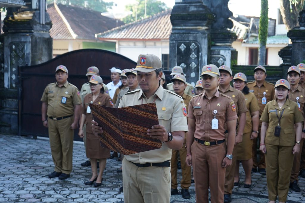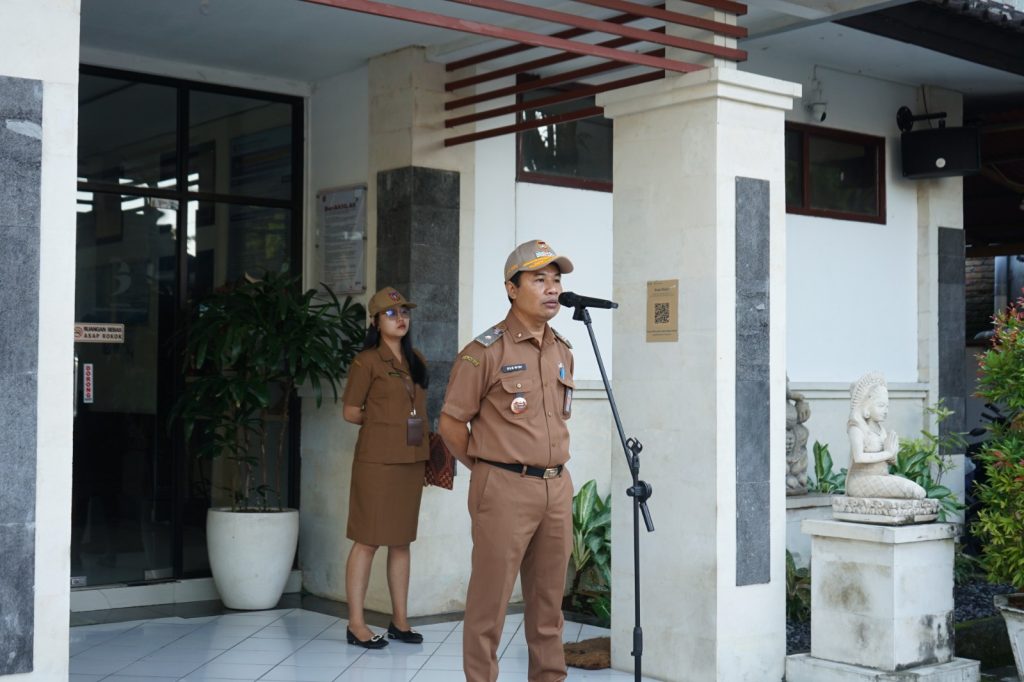 , Senin (30/03) seluruh pegawai Bapeda Karangasem mengikuti apel disiplin yang dipimpin oleh Kepala Bapeda, I Gusti Bagus Widiantara, ST., M.Si.