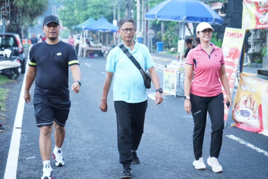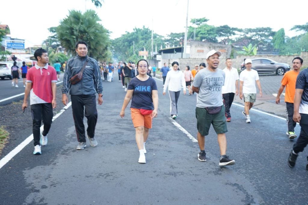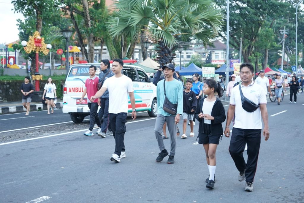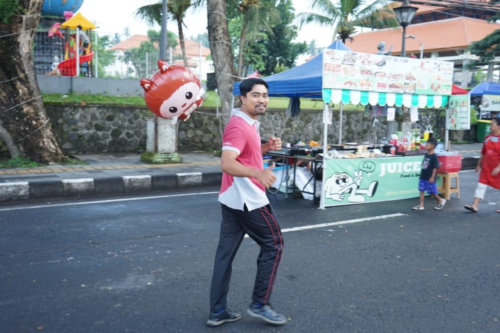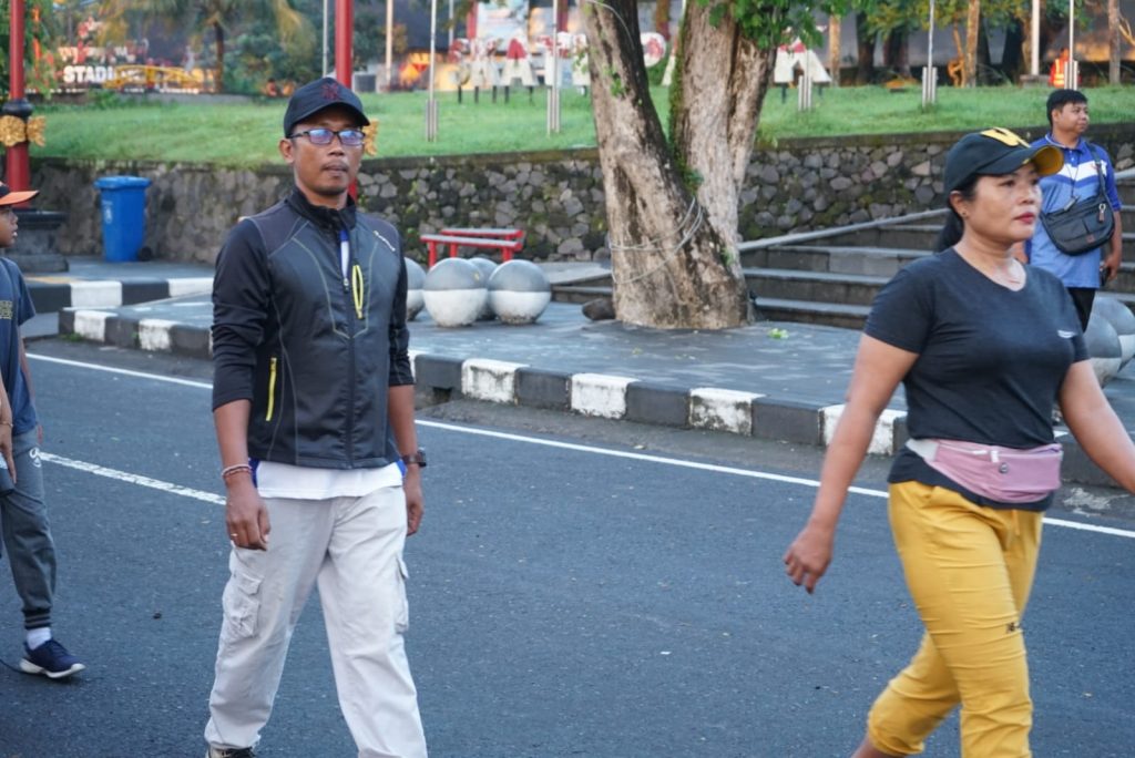 , Minggu (05/04), Memeriahkan Hari Balita Nasional, Kepala Bapeda Kabupaten Karangasem, I Gusti Bagus Widiantara, S.T., M.Si., mengajak pejabat dan staf mengikuti kegiatan jalan santai di kawasan CFD Jalan Veteran, Amlapura.